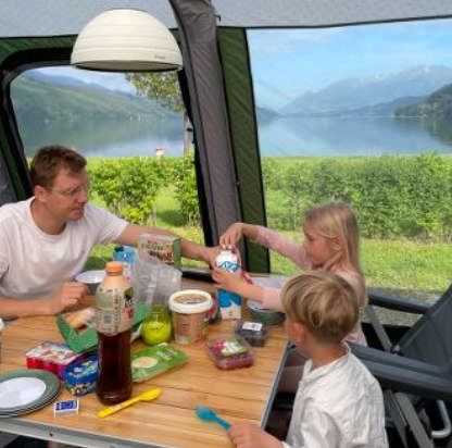 "Camping Brunner Am See er en helt fantastisk campingplads med en kulisse, der er langt smukkere, end vi nogensinde kunne forestille os. Vi havde en bjergtagende udsigt til søen – et syn vi aldrig kommer til at glemme," siger Camilla og tilføjer med et smil: "Alfred glædede sig til at hoppe direkte ud i vandet fra vores teltplads."