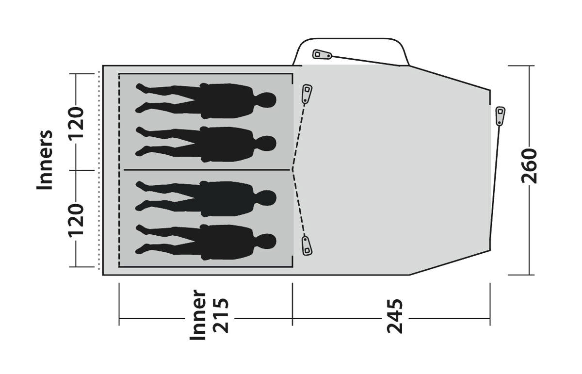- Überzelt mit komplett versiegelten Nähten für maximalen Schutz vor Wettereinflüssen