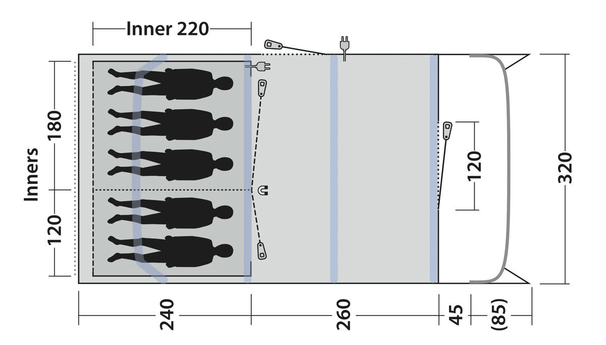 - Reliable, easy-to-operate inflate/deflate valves conveniently placed outside the flysheet