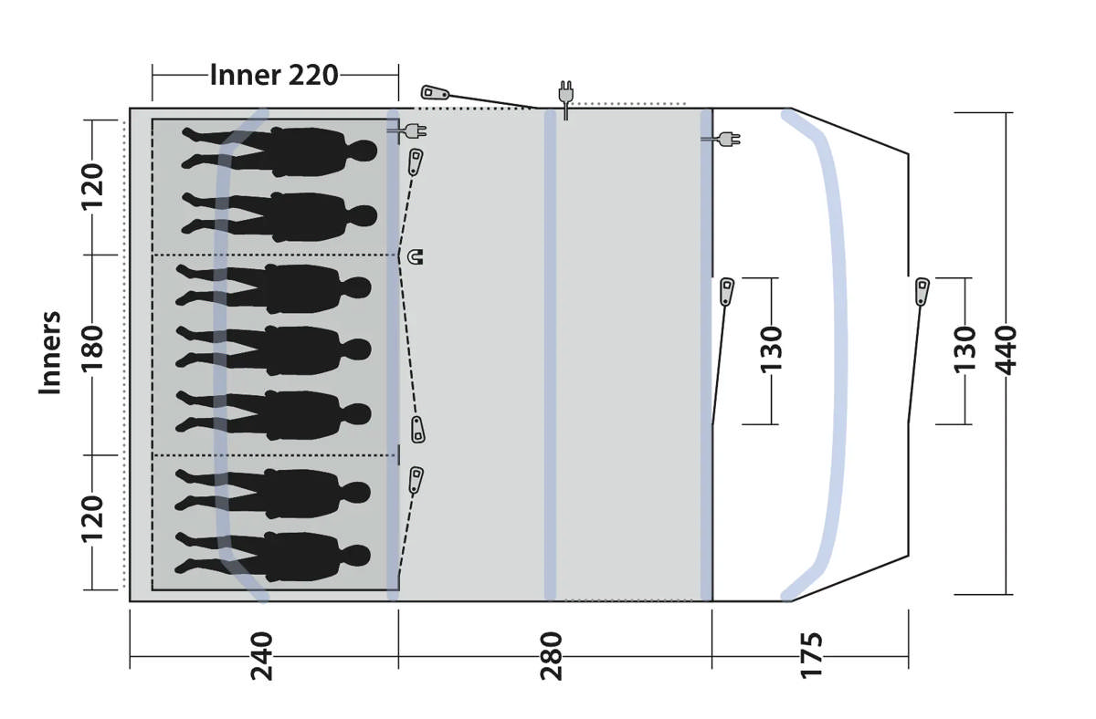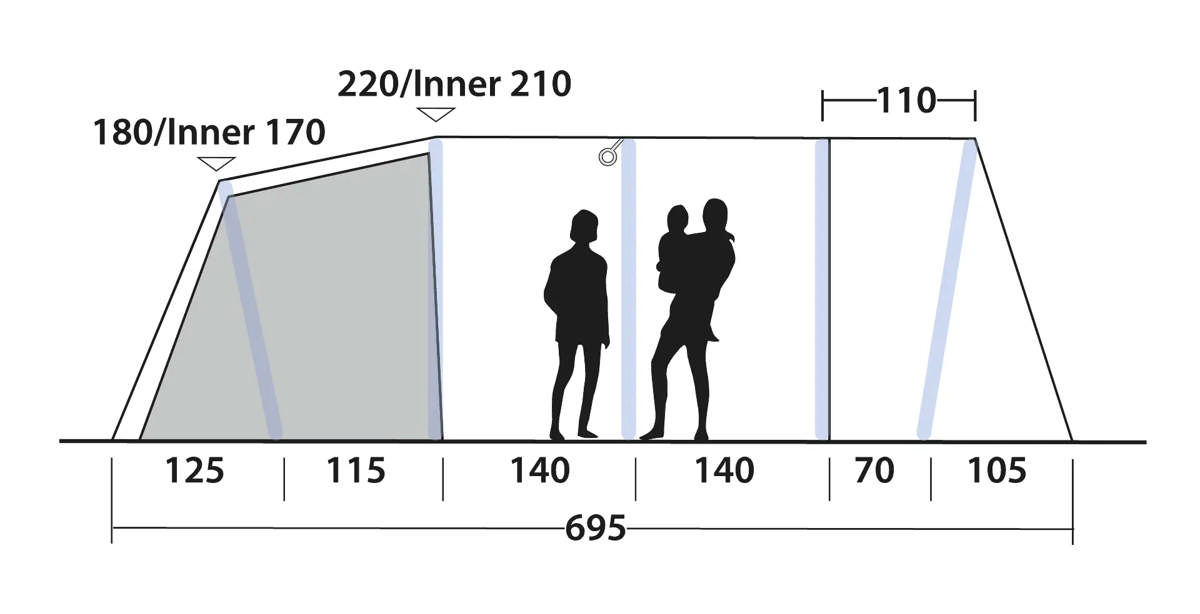- Bring everyone together with the huge Outwell Tennessee 7 Air. Sleeping up to seven people across three darkened bedrooms, this three-zone tent is great for larger families or camping with friends. Whether eating, playing or hanging out, there’s room for you all to relax and enjoy time together. Quiet bedroom access prevents early risers waking sleepers. The wet zone can be used for storage or as a sheltered entrance during bad weather. Need help finding the right air tent - find our Air tent buyers guide here.