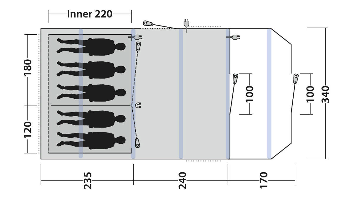 - Reliable, easy-to-operate inflate/deflate valves conveniently placed outside the flysheet