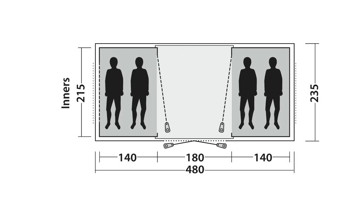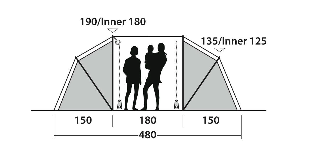 - Casagrande 4 features a practical vis-a-vis layout with separate bedrooms at each end and a bright, spacious living area in between. Large windows and full standing height create a comfortable space for everyday camping life. Dark Premier Bedrooms with mesh ventilation help ensure a restful night’s sleep, while organiser and mesh pockets keep essentials close at hand. A durable, waterproof sewn-in groundsheet, heavy-duty Outwell zips and the Outwell Wind Stabilizer System provide dependable protection, with pre-attached luminous guylines ensuring quick and easy pitching.