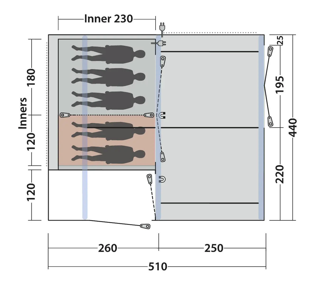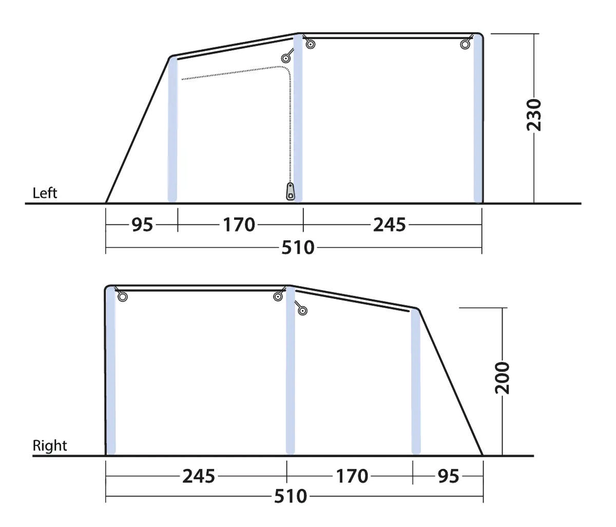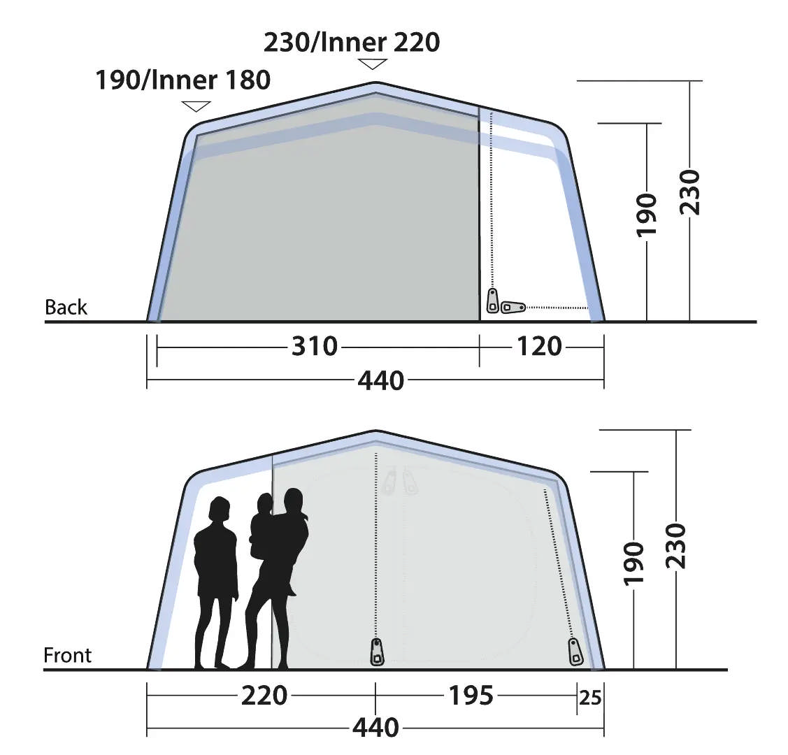 - Reliable, easy-to-operate inflate/deflate valves conveniently placed outside the flysheet