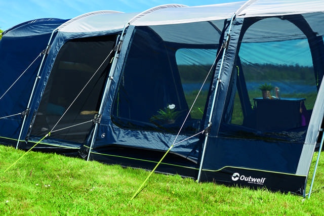 The Outwell Extended Frame System is also unique. Here again, there is superior headroom and maximum stability, thanks to the initial strength of the tent’s main poles being able to support an offshoot pole via a cleverly designed special junction that also brings extra stability all-round.