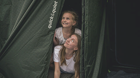We have extended the practical use of our innovation by developing the Quick & Quiet System for the wall between the living area and the third zone in our three-zone camping tents.