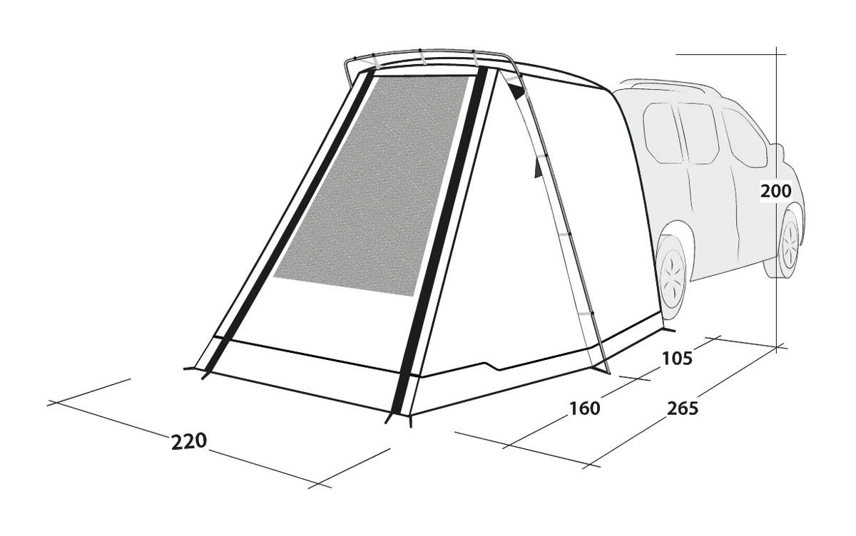 En couple, en famille ou entre amis, vous apprécierez l'espace offert par Outwell Sandcrest L, un astucieux modèle conçu pour tous les amateurs de confort en camping. Ce modèle poids plume monté sur une seule armature en aluminium, se transporte dans un petit sac et se fixe à l'arrière du véhicule sans gêner l'accès par la porte latérale. Il est conçu pour des véhicules de type Peugeot Rifter, Citroen Berlingo ou VW Caddy. La hauteur est réglable mais il est également idéal pour les véhicules plus petits et les SUV. Parfait pour préparer le repas au camping, le temps d'une sortie, pour s'abriter ou se changer. La conception astucieuse permet de fermer et de verrouiller la porte arrière quand vous partez pour unn randonnée à pieds ou à vélo, et de la laisser ouverte pour profiter la nuit d'une ventilation optimale grâce à la moustiquaire. Vous pouvez aussi relever la porte verticalement pour plus d'ombrage (armatures non fournies) pendant que vous réparez votre vélo ou que vous rechargez vos batteries après une longue journée de promenade.