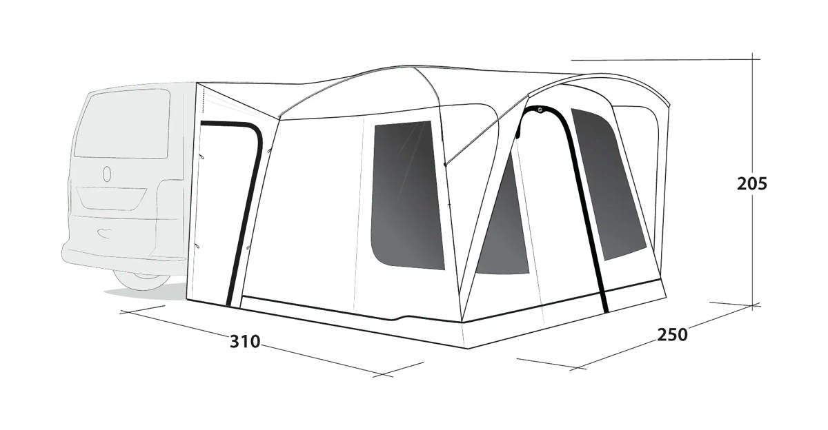 Höj din campingupplevelse med detta fristående yttertält. Med ett rymligt vardagsrum, UV-skydd och insektsfri ventilation erbjuder det komfort och bekvämlighet på språng.