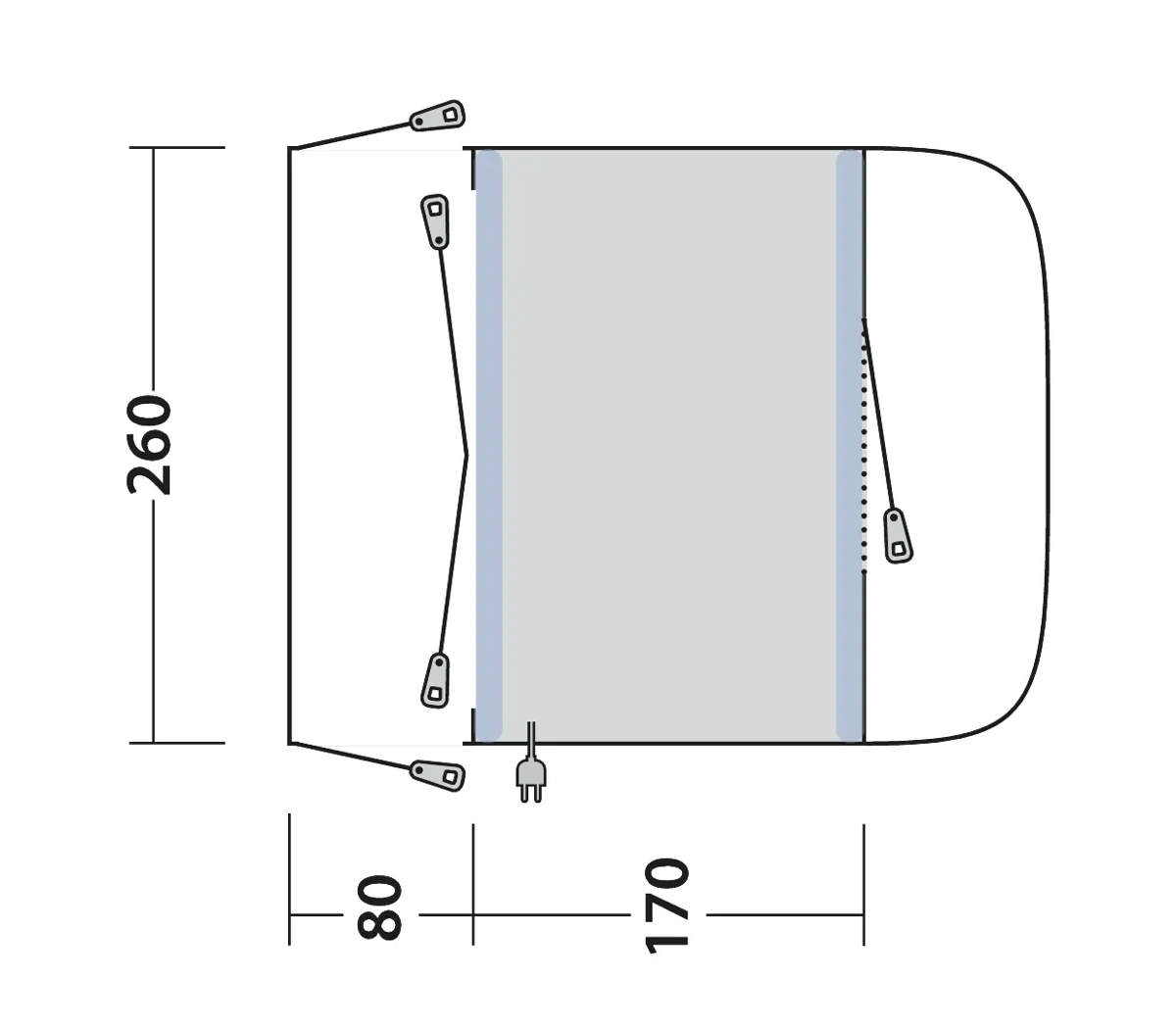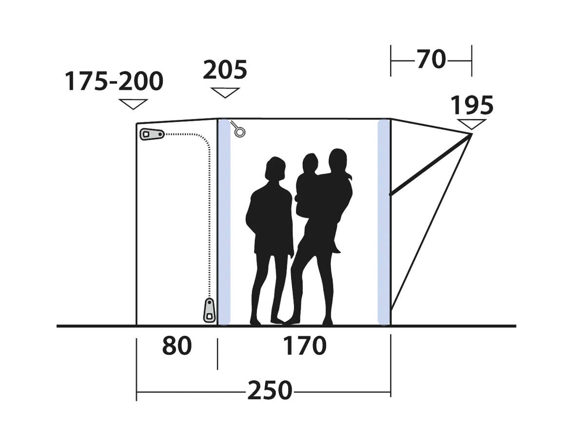 - Den kompakta, uppblåsbara Outwell Santa Monica Air markisen är perfekt för par, små familjer, vänner och ensamresande. Den erbjuder mångsidigt extra boendeutrymme och valfritt sovutrymme på campingen. Flexibelt tillträde erbjuds via sidodörrar på båda sidor av Link Access Zone, som kopplar den till din husbil, tillsammans med en lättanvänd J-dörr i fronten skyddad av ett praktiskt tak. Insektsäker nät bakom frontdörren möjliggör enkel och snabb justering av ventilationen. När du ger dig ut på äventyr kan du låta markisen stå fritt och säkert på din plats, redo att välkomna dig tillbaka hem vid din återkomst.
