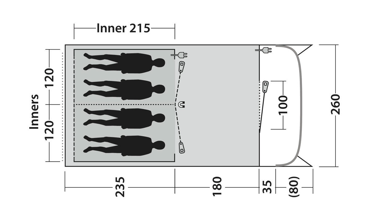 Detta 4-personers tre-rums tunnel tent har en hållbar, vattentät konstruktion och ett innovativt stag-system för stabilitet. Njut av ett ljust inre och utmärkt ventilation.
