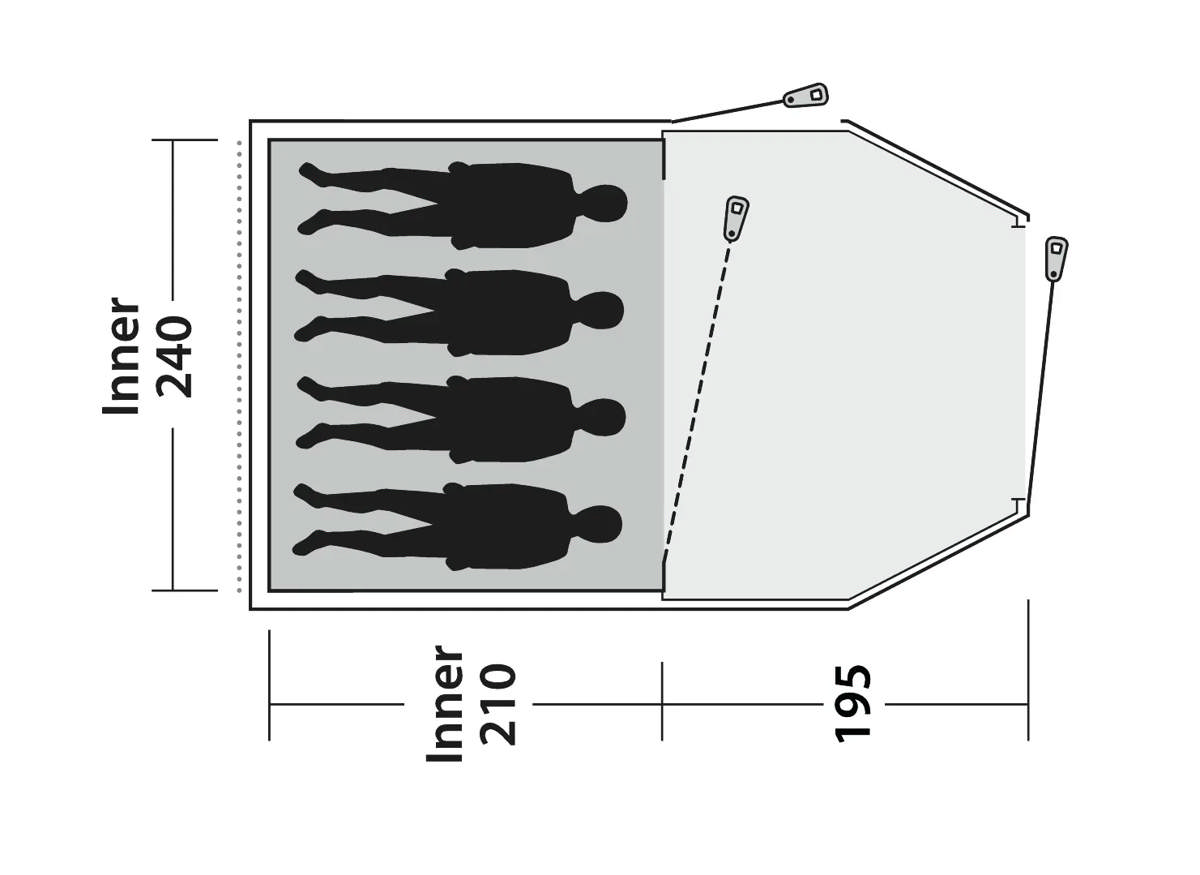 Rymligt 4-personers två-rums tunneltält med flexibel tillgång, insektsfria nätter och utmärkt förvaring. Lätt att sätta upp och perfekt för campingkomfort.