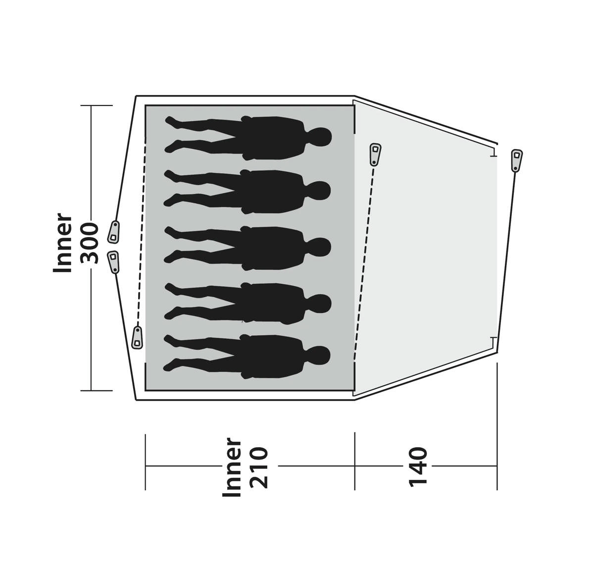 • Innertältet har ett integrerat och helt tätt golv för dragfria nätter och skydd mot krypande insekter