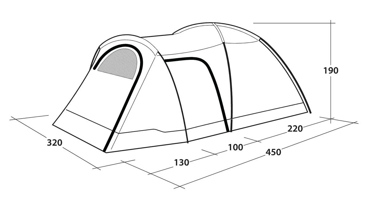 Detta två-rums kupol-tält rymmer bekvämt 5 personer, med en rymlig vardagsrumsyta, mörkt innertält för lugn sömn, och utmärkt ventilation.