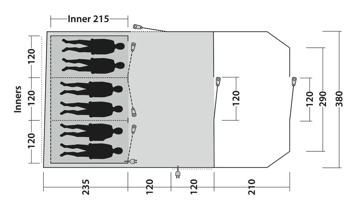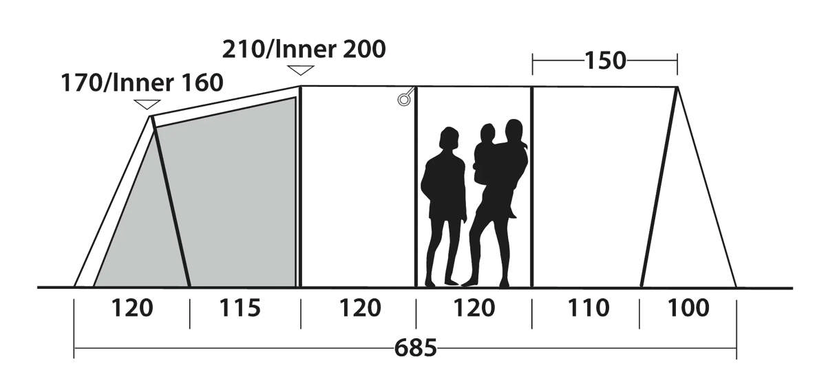 - Tre zoner ger stora familjer våtutrymme, torrt vardagsrum och sovrum. Det främre innertältet är perfekt för förvaring eller som ett extra sovrum och tas enkelt bort för att öka boytan