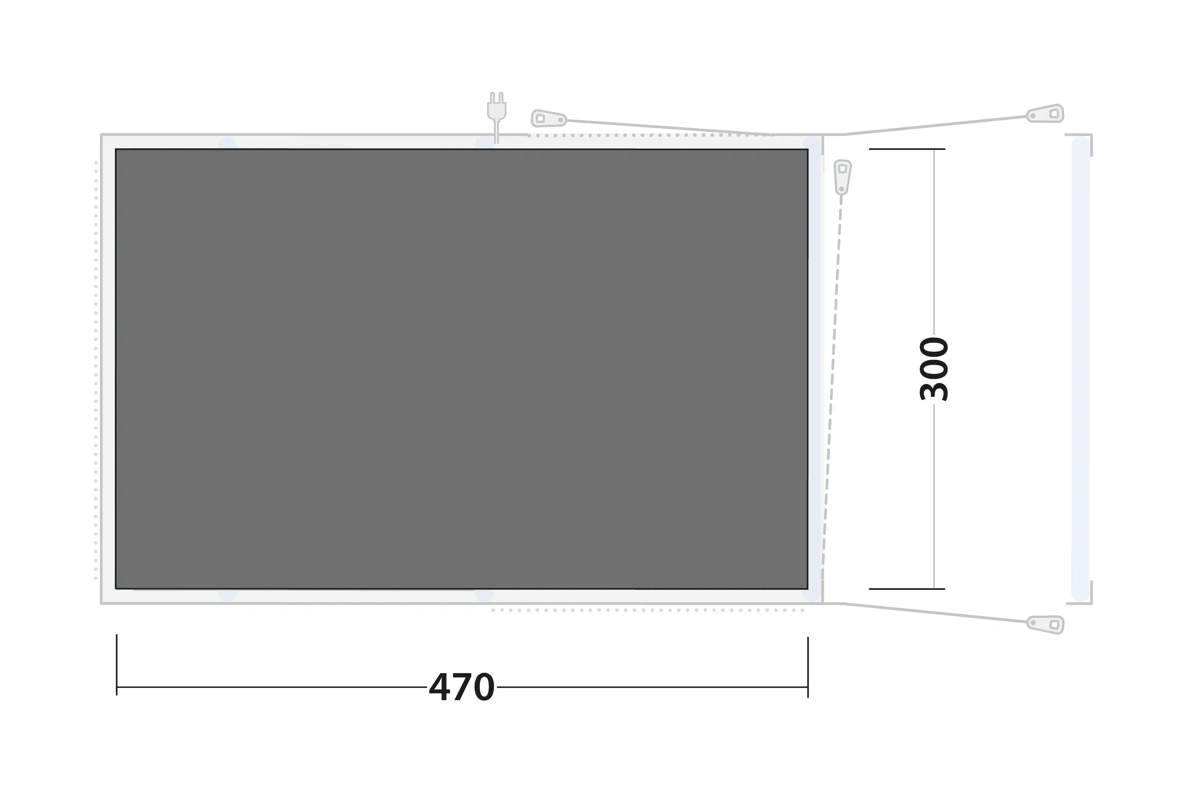 Det här praktiska underlaget håller golvet i ditt tält rent och skyddar det mot nötning och skador. Det ger också isolering mot den kalla marken. Golvskyddet bör vara fullständigt täckt av tältet för att förhindra att regnvatten rinner in under golvet.