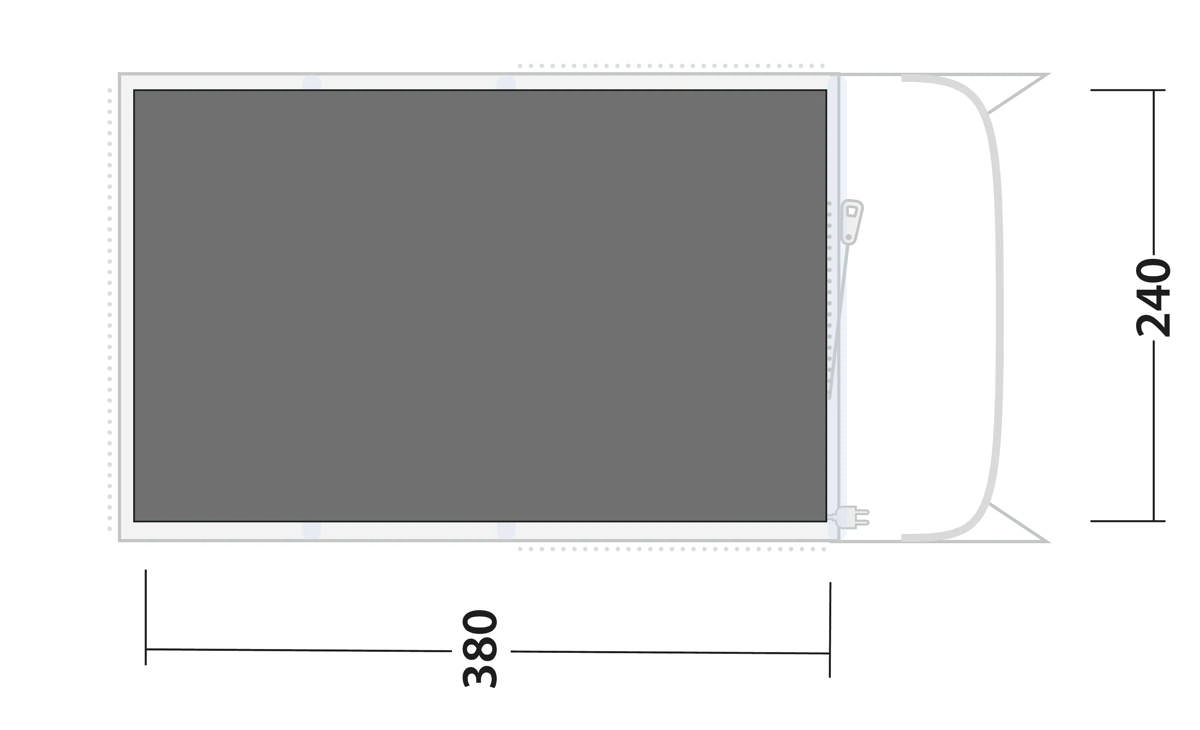 - Det här praktiska underlaget håller golvet i ditt tält rent och skyddar det mot nötning och skador. Det ger också isolering mot den kalla marken. Golvskyddet bör vara fullständigt täckt av tältet för att förhindra att regnvatten rinner in under golvet.