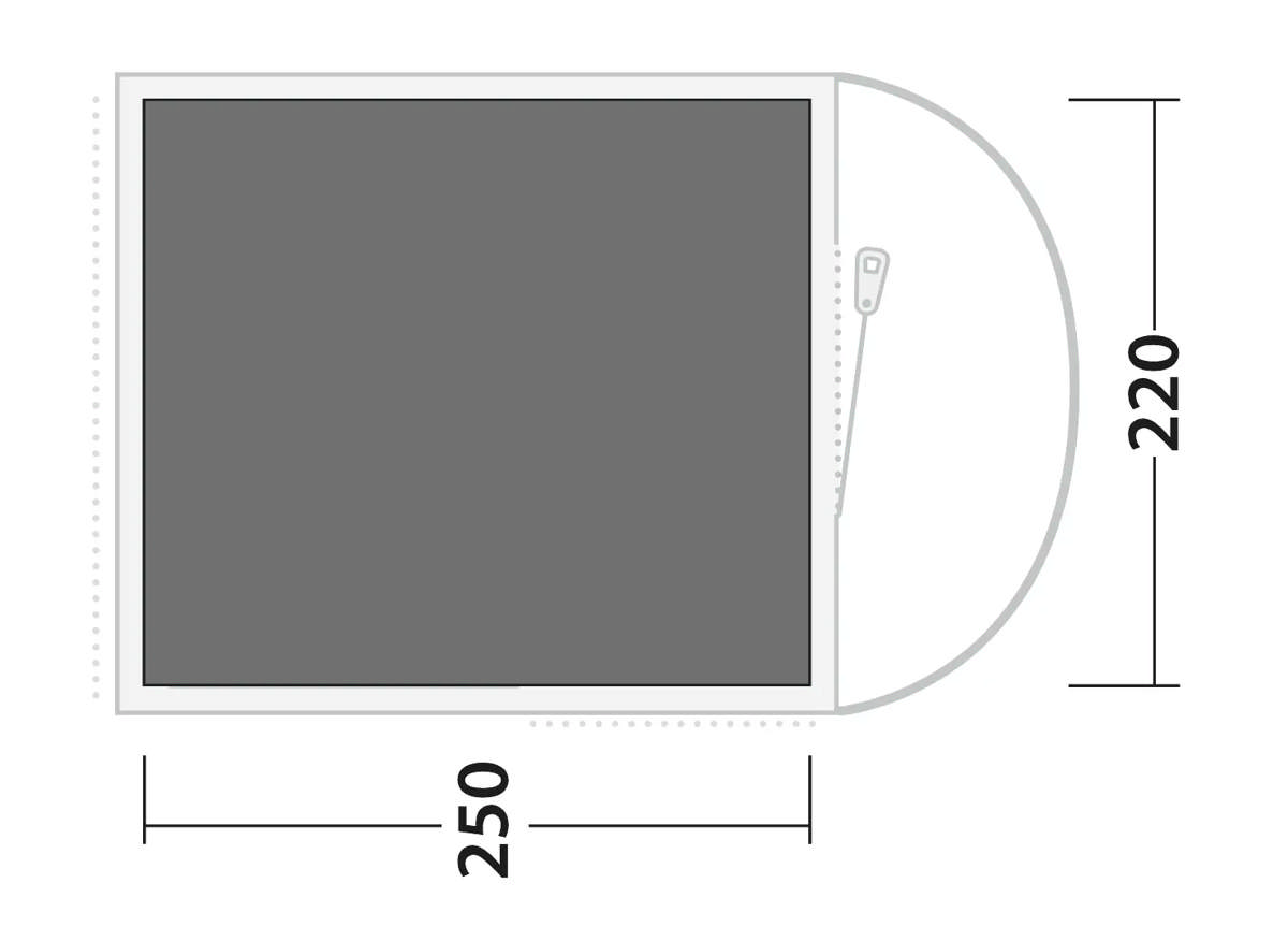 - Det här praktiska underlaget håller golvet i ditt tält rent och skyddar det mot nötning och skador. Det ger också isolering mot den kalla marken. Golvskyddet bör vara fullständigt täckt av tältet för att förhindra att regnvatten rinner in under golvet.