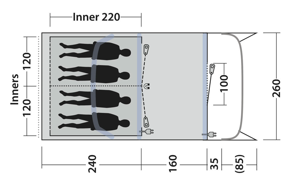 - Pålitliga och lättanvända ventiler för uppblåsning/tömning praktiskt placerade utanför yttertältet