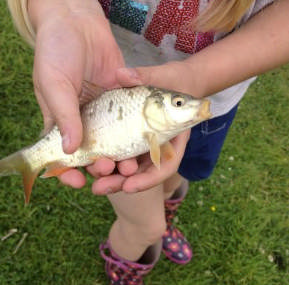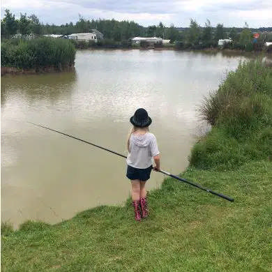Det fantastiska med camping är att barnen får göra saker som de annars kanske inte hade möjlighet till, och denna plats har egna fiskedammar. Vicky hade tagit med sig lite fiskeutrustning, så denna gång fick alla turas om att försöka fånga en fisk.