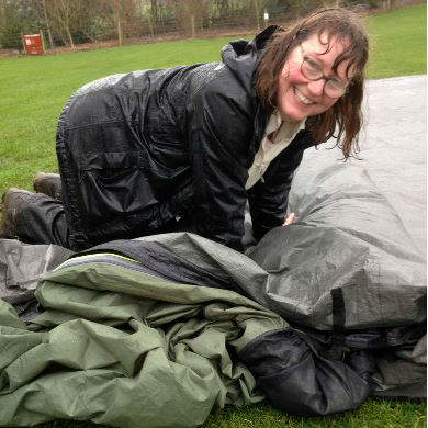 Inte riktigt lika lyckat den här gången, eftersom hon råkade slå upp tältet på fel plats och fick flytta det efteråt. Regnet höll sig dock borta tills hon hade slagit upp tältet på rätt plats, och resten av helgen gjorde upp för det.