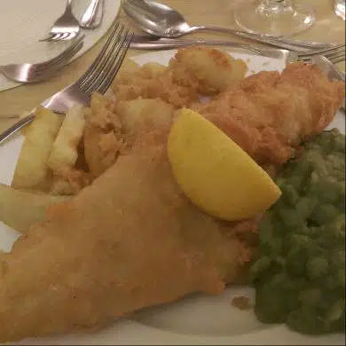 Även om det inte var särskilt kallt, regnade det kraftigt och vinden ven som galen. Som tur var avtog regnet inte långt efter att vi hade gett oss av, men vinden fortsatte ett tag och vi oroade oss för att våra tält skulle blåsa bort. Vi blev lättade när vi upptäckte att de stod emot stormen bra. På kvällen gick vi till byns lokala pub för en fish and chips-middag, och än en gång slapp vi prövningen att försöka laga mat i dåligt väder.